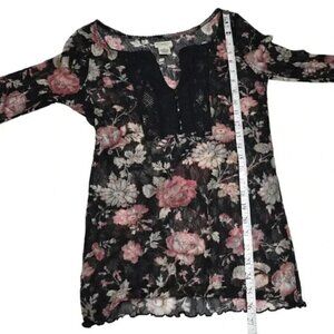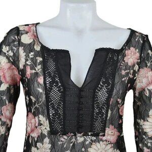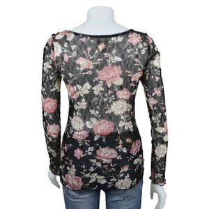Ralph Lauren Denim & Supply Floral Sheer Blouse Black Pink Long Sleeve Medium