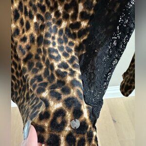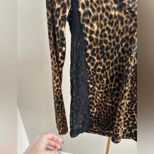 Ralph Lauren Denim & Supply, leopard lace top, sheer lace shirt, Y2K blouse, XS long sleeve top, leopard print shirt, edgy lace top, White Lotus style, statement blouse, animal print
