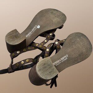 * Denim & Supply Ralph Lauren brown studded leatherankle strap sandals, size 7