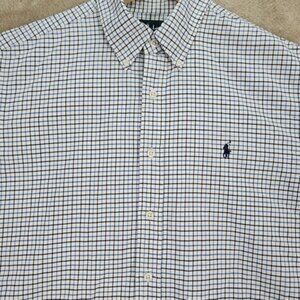 Ralph Lauren Dress Shirt Classic Fit Plaid Checkered Blue Pony Logo Mens Size L