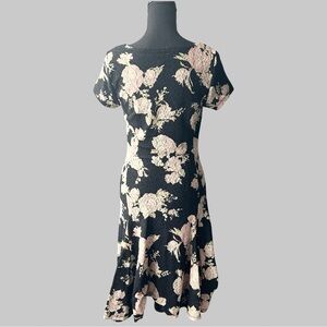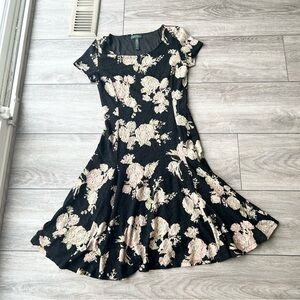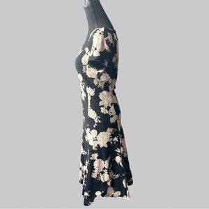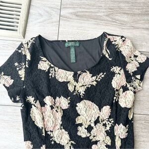 This lovely lace dress features a delicate floral pattern and a feminine scoop neckline.