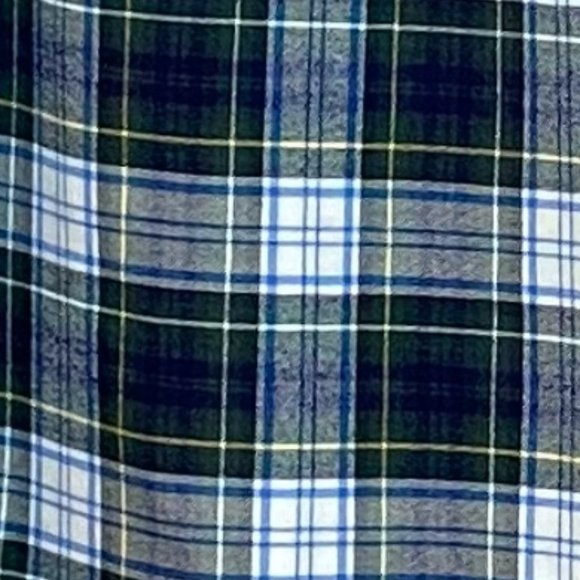COLOUR: Blue, grey, green, and white plaid with yellow details. The colours may vary slightly due to the lighting when taking pictures. No filters applied.