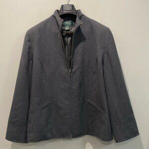 Ralph Lauren Jacket Blazer Wool Gray Zip Up Size 20