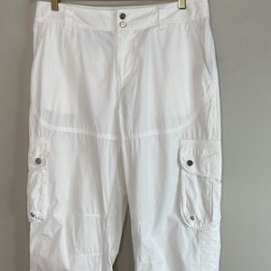 Women’s white Ralph Lauren L-RL Lauren Active Y2K Vibe Cargo Pants with Drawstring Hems.