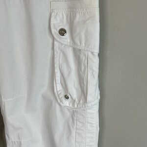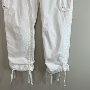 Ralph Lauren L-RL Lauren Active Y2K Vibe White Cargo Pants Drawstring Hem 10
