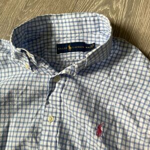 Ralph Lauren Light Blue Checkered Shirt with pink polo logo