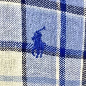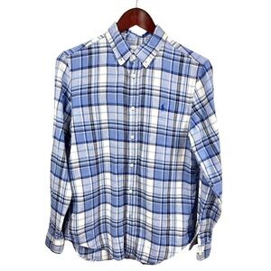 Ralph Lauren Linen Blend Blue Plaid Custom Fit Shirt Size XS