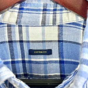 Ralph Lauren Linen Blend Blue Plaid Custom Fit Button Up Shirt