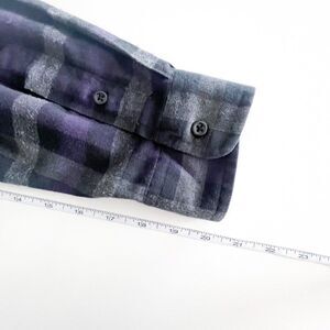 Ralph Lauren Men's Blake Plaid Shirt Long Sleeve Purple Black Gray Size Large. Nice soft shirt. 100% Cotton. Good condition with lots of pilling. Please see photos for details and approx. measurements.