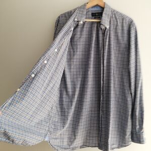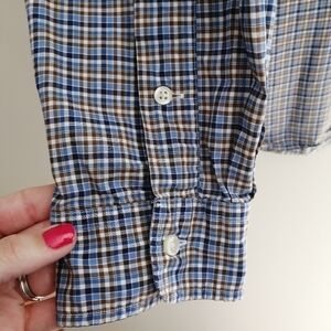Ralph Lauren Men's Check Plaid Button Down Blue, White, and Brown Large