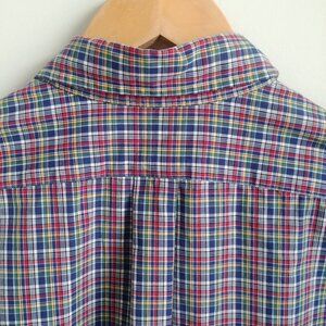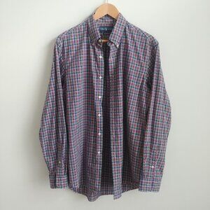 Ralph Lauren Mens Large 100% cotton red blue plaid button down shirt