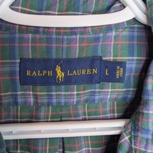 Ralph Lauren Men's Large Blue Green Purple Plaid Button Down Logo Shirt