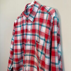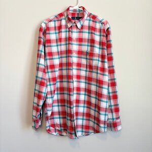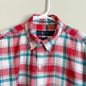 Ralph Lauren Men's Size XL Custom Fit Button Down Plaid Red Teal Preppy Classic