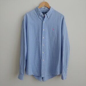 Ralph Lauren Mens XL thick sturdy 100% cotton blue checked button down shirt