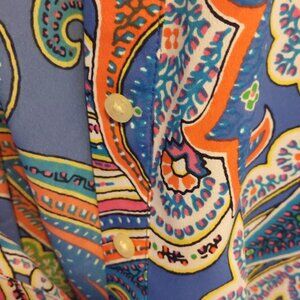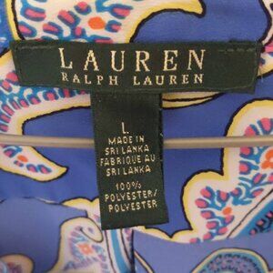 This is a Ralph Lauren Multicolour Paisley Floral blouse with full-length sleeves. It is a size L and is made of 100% Polyester. It is also machine washable and in amazing condition!