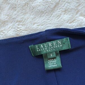 Elevate your work-to-evening wardrobe with this Ralph Lauren navy cowl-neck dress, Size 2, in new condition with one tiny pull. Featuring a draped neckline, cap sleeves, and figure-flattering ruching, this dress delivers powerful poise and polished ease in one sleek silhouette.