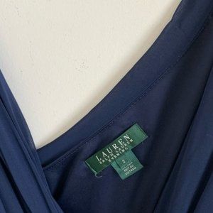 Beautiful flowy frills. Maxi dress with wrap top and hidden side zipper.