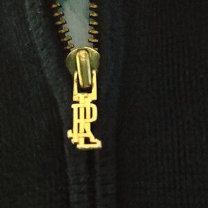 Ralph Lauren Navy Quarter Zip Cotton Sweater with Gold Crest