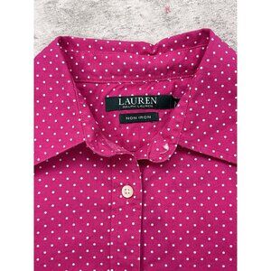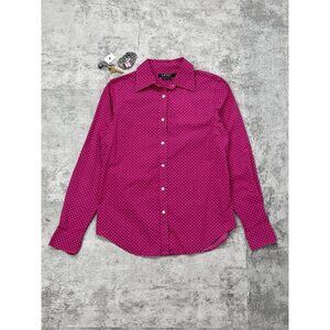The Ralph Lauren Pink Polka Dot Button-Up offers a stylish, playful design. Made from soft cotton, it showcases a classic button-down style with a charming pink polka dot pattern. A versatile piece that effortlessly blends casual and polished looks.