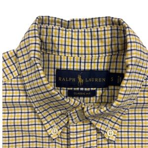 Keywords: Ralph Lauren, button down shirt, plaid shirt, long sleeve shirt, classic fit, yellow shirt, mens shirt, casual shirt, dress shirt, small, S, preppy style, cotton shirt, checkered shirt