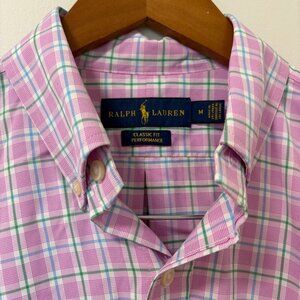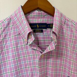 Ralph Lauren Plaid Button Down Shirt Mens Plaid Purple Green Size M Classic Fit