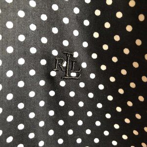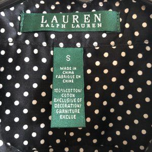 Beautiful black and cream polka-dot Ralph Lauren button down. Perfect for work or roll up the sleeves for a more casual look! Comes with spare buttons. Originally purchased at Nordstrom. Price tag in USD.