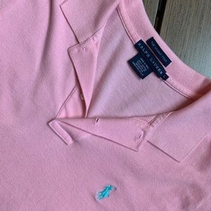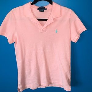 Light pink mens polo. size large slim fit-men's sizing. Would fit a M/L in womens for a fitted look, or a S/M for a more oversized look. Worn only a few times, in very good condition.