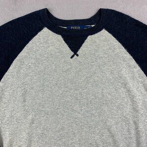 Ralph Lauren Polo Mens Sweater Medium Gray Blue Colorblock Crewneck Long Sleeve