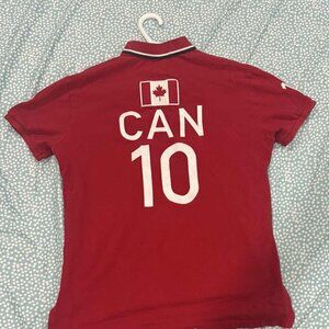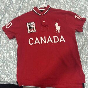 Medium Size custom fit Team Canada Red Ralph Lauren polo shirt. Pit to Pit is 21''