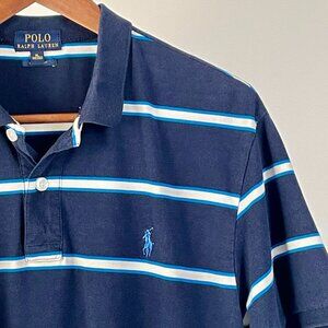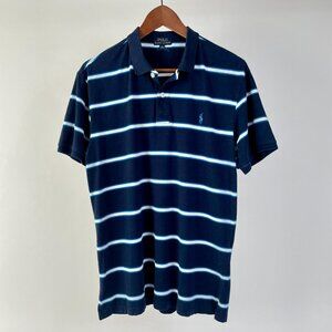 Ralph Lauren Polo Short Sleeve Tee Shirt, Navy Blue Royal Blue White Stripe, L