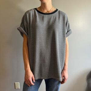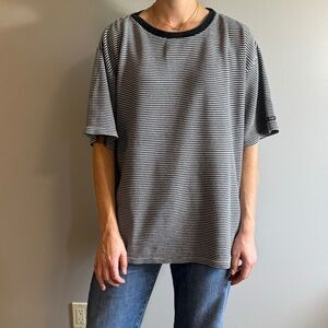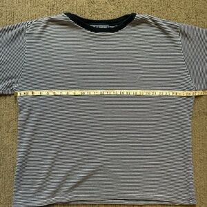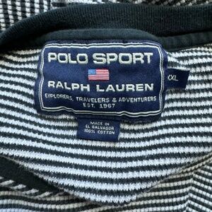 Ralph Lauren Polo Sport shirt. Black and dark grey striped ribbed short sleeve shirt. Will fit a variety of sizes depending on desired style. Size XXL.