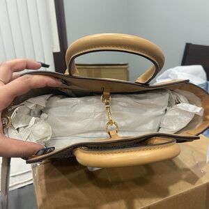 All packaging intact. Brand new! Very stylish purse with gorgeous accents. Beautiful shade of blue and tan would compliment so many outfits. Can be used as a handbag or a shoulder bag (removable shoulder). Shoot me an offer!