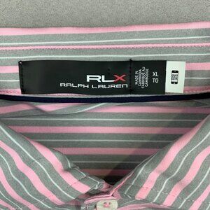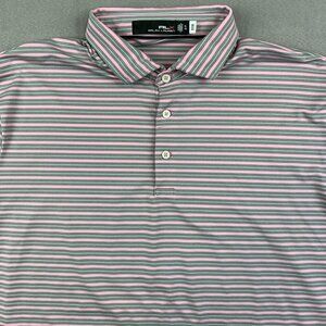 Ralph Lauren RLX Mens Shirt XL Pink Gray Striped Polo Golf Stretch Performance