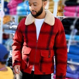 This Ralph Lauren RRL field jacket is characterised by its red-hued plaid design, adorned with a contrasting shearling collar. It's finished with two front patches and a quilted lining for heightened warmth.