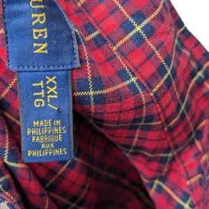 Ralph Lauren Red Plaid Mens Long Sleeve Button Down Shirt 100% Cotton Size XXL