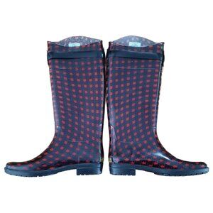 Ralph Lauren Rossalyn II Red Houndstooth Tall Rain Boots US Size 8 Rubber