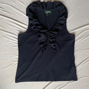 Ralph Lauren Ruffle-Trim Sleeveless Cotton Top - Size M PERFECT FOR SUMMER