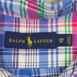 Ralph Lauren Shirt 2XB Blue Plaid Short Sleeve Button Up Preppy Casual Classic