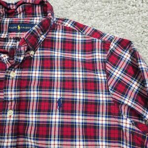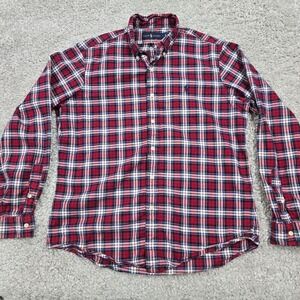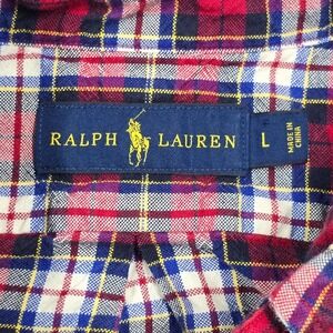 Ralph Lauren Shirt Mens Large Red Blue Plaid Button Up Long Sleeve Pony Preppy