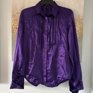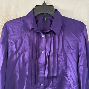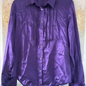 Size: Medium. Color: Amethyst. 100% silk. Button up, pleated front. Wide wrists.