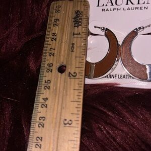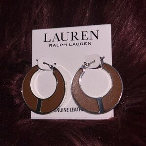 Ralph Lauren Silver and Brown Leather Hoop Earrings