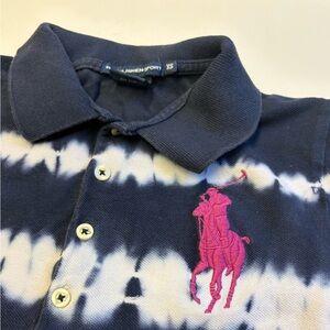 Ralph Lauren Sport Blue Tie-Dye w Pink Horse Button Down Cotton Shirt Size XS