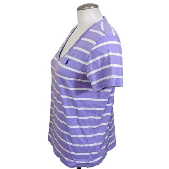 Ralph Lauren Sport Womens XL Striped T Shirt Purple White Cotton Short Sleeve