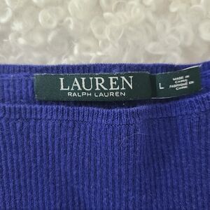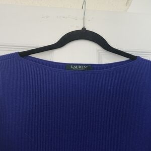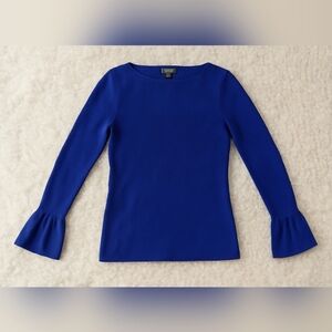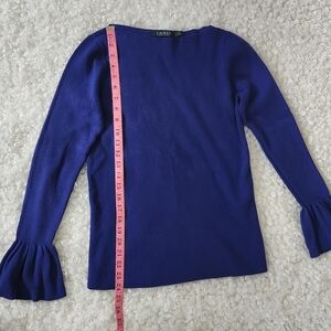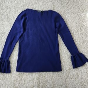 Ralph Lauren Sz L Blue Purple Fitted Bell Sleeve Ribbed Knit Pullover Flare Cuff