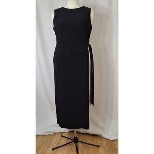 Ralph Lauren Black Wrap Dress Plus Sz 16 Sleeveless Pleated Tie Waist Contract White Side Panel