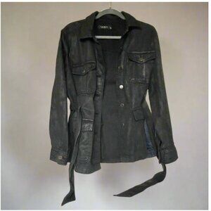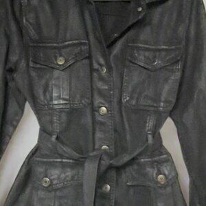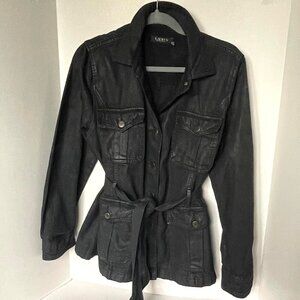 Ralph Lauren Utility Jacket Womens Black 14 Coated Denim Trucker Belted Field