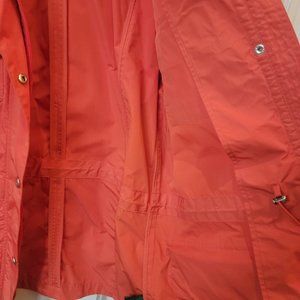 Ralph Lauren, EUC, Size M, Windbreaker/Utility jacket in a gorgeous orange colour with silver hdwr. Double snap chest and waist pockets, full double zip closure with additional snap closure, inner drawcord waist, double snap adjustable cuffs and double snap at the collar. No visible marks, stains, tears. In new like condition!!