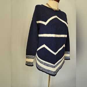 Beautiful wool Chevron striped southwestern wool blanket sweater. Crew neck and V hem.