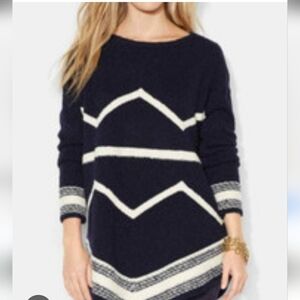 Ralph Lauren Wool Navy and Cream Chevron Striped Sweater. Size PXS