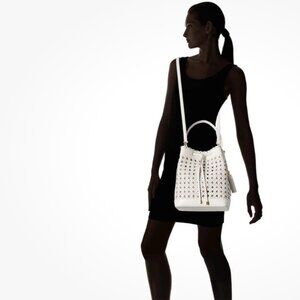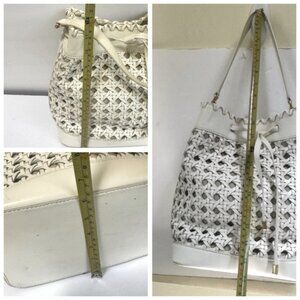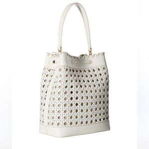 Ralph Lauren Woven Leather Portwood Debby Tassel Logo Drawstring Shoulder Bag Bucket